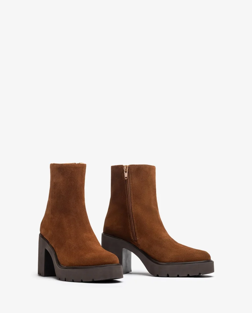 Stivaletto con punta rotonda realizzato in pelle. Cerniera interna. Tacco alto 8,5cm e plateau di 2,5cm. Suola SuperLight che dona leggerezza, comfort, ergonomia e flessibilità. Comodità, calore e leggerezza sono quello che offre il nostro modello KHAN.